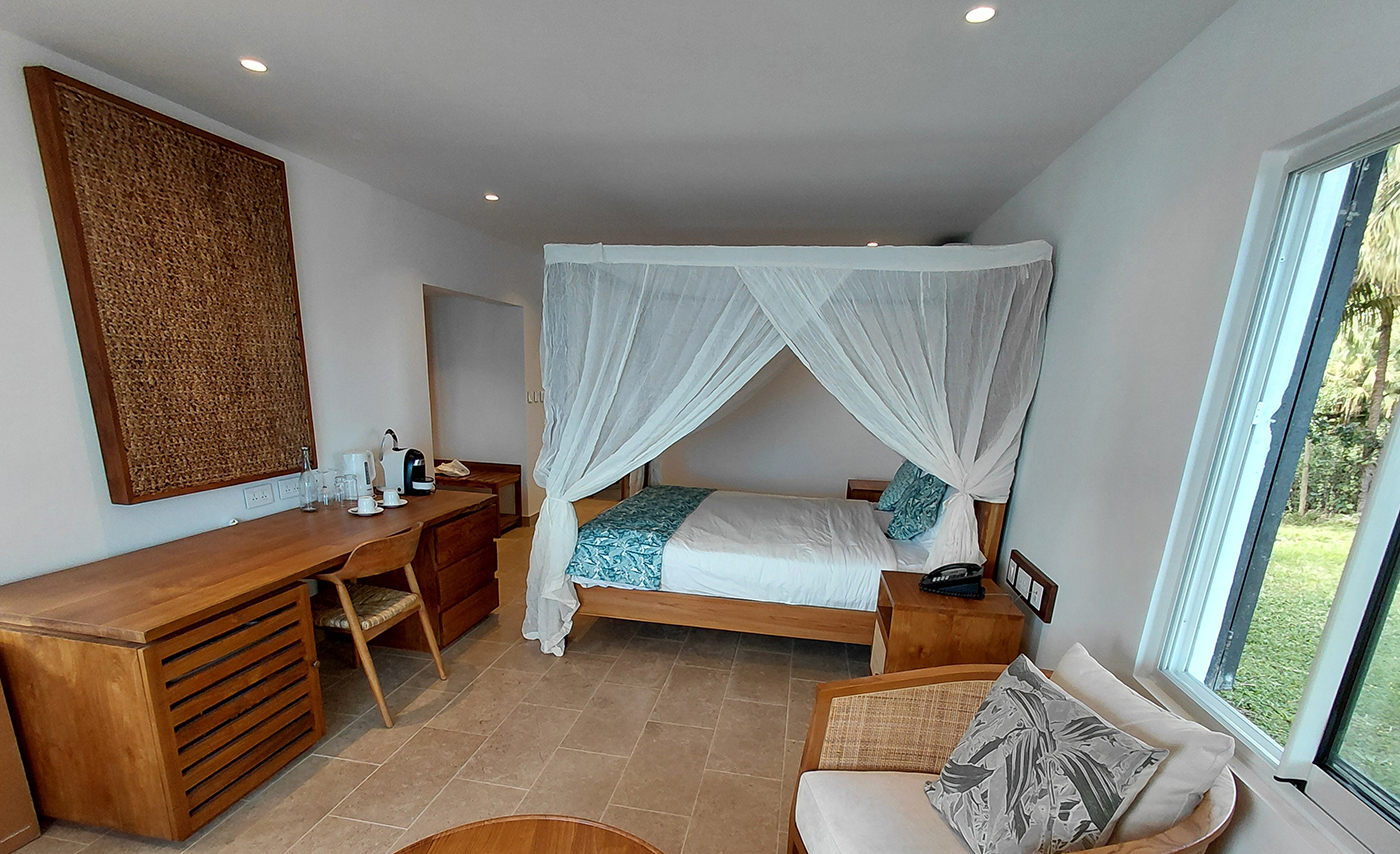 Chalets Chamarel is a unique property on the island. The hotel offers 9 Double deluxe chalets and 2 spacious suites perched on the ridges of Chamarel mountain ‘Piton La Porte’ with exceptional panoramic views of the west coast on one side and breathtaking views of the forests of Chamarel on the other.