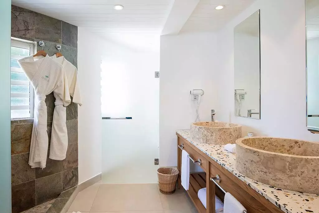 This beach hotel is an Adults-Only concept and offers 10 Deluxe rooms, 10 Suites, 1 Royal Suite of 2 bedrooms and 1 Villa Coin de Mire of 2 bedrooms. All rooms are sea view.